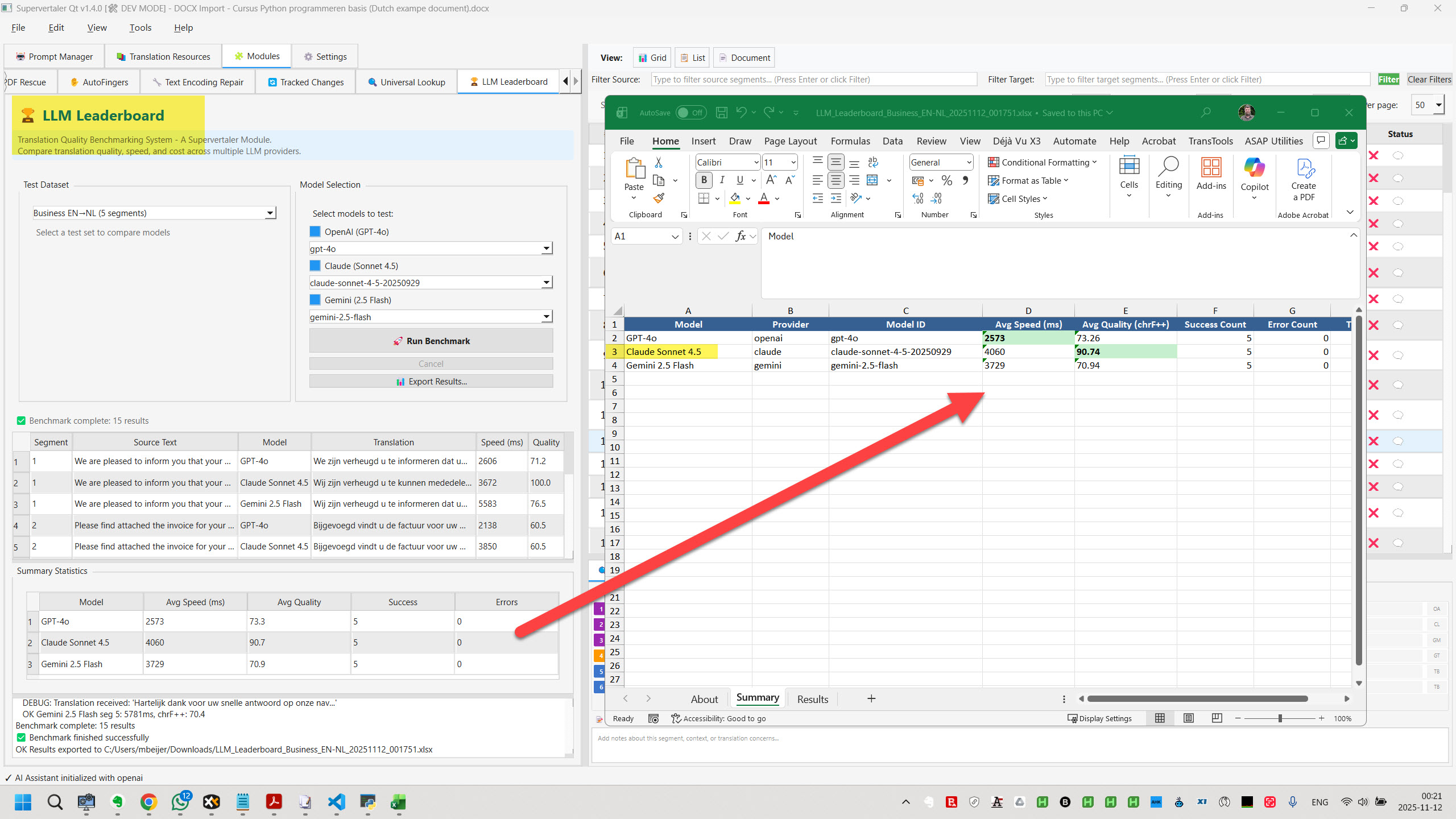 LLM translation quality benchmarking with adaptive project sampling and chrF++ scoring. Compare OpenAI, Claude, and Gemini models on YOUR actual work. Professional Excel reports included.